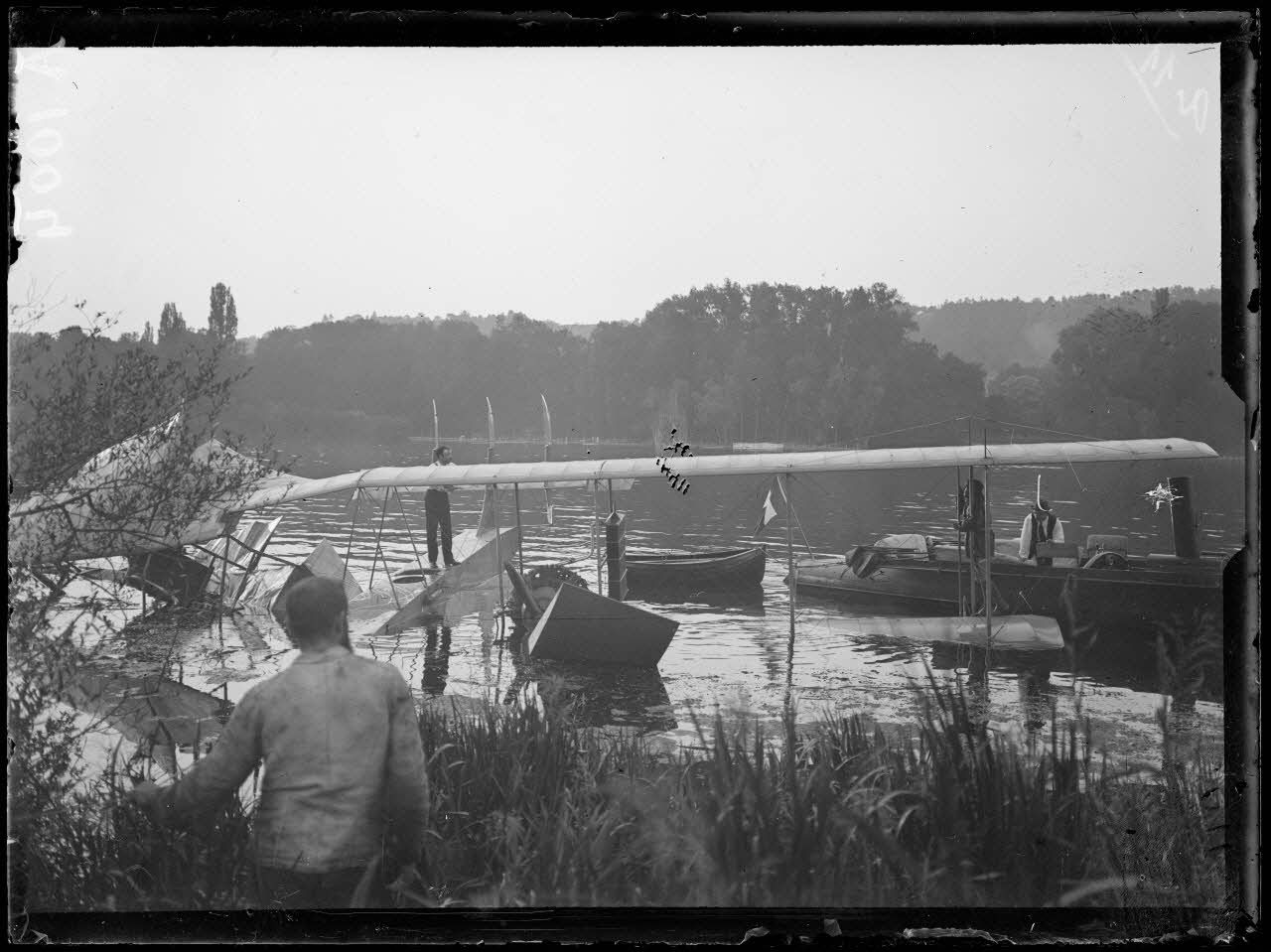 Meulan (Seine et Oise). Essais de l'hydroaeroplane torpilleur Borel. Essais de sauvetage. On ramène l'appareil au rivage. [légende d'origine]