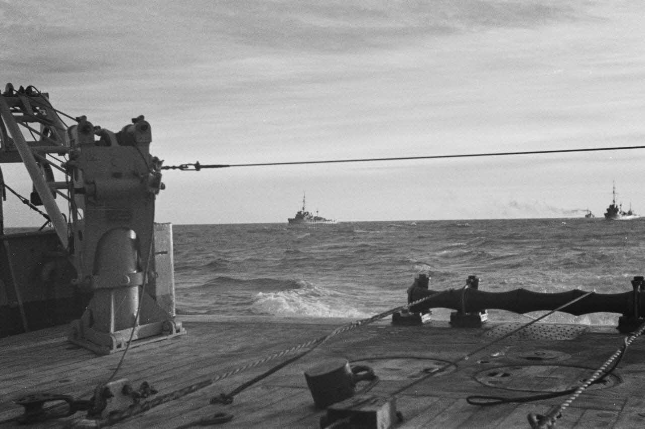 Mise en place des dragueurs de mines allemands en vue du repérage et de la destruction de mines anglaises.