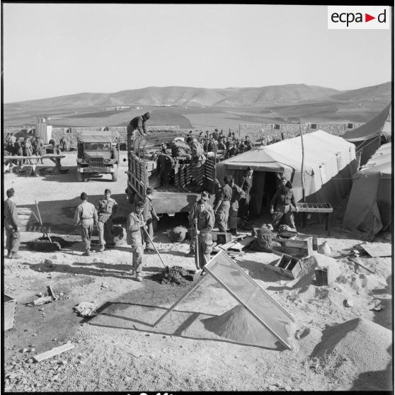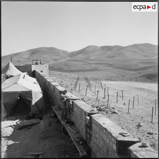 Construction d'un poste fortifié à la frontière algéro-marocaine.
