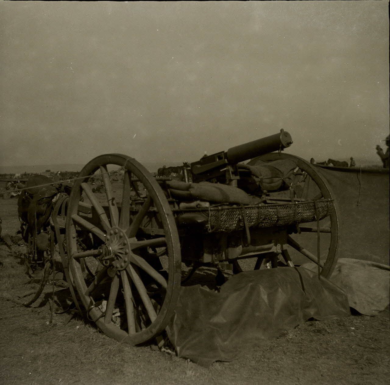 Mitrailleuse Maxim sur son affût réglementaire. [légende d'origine]