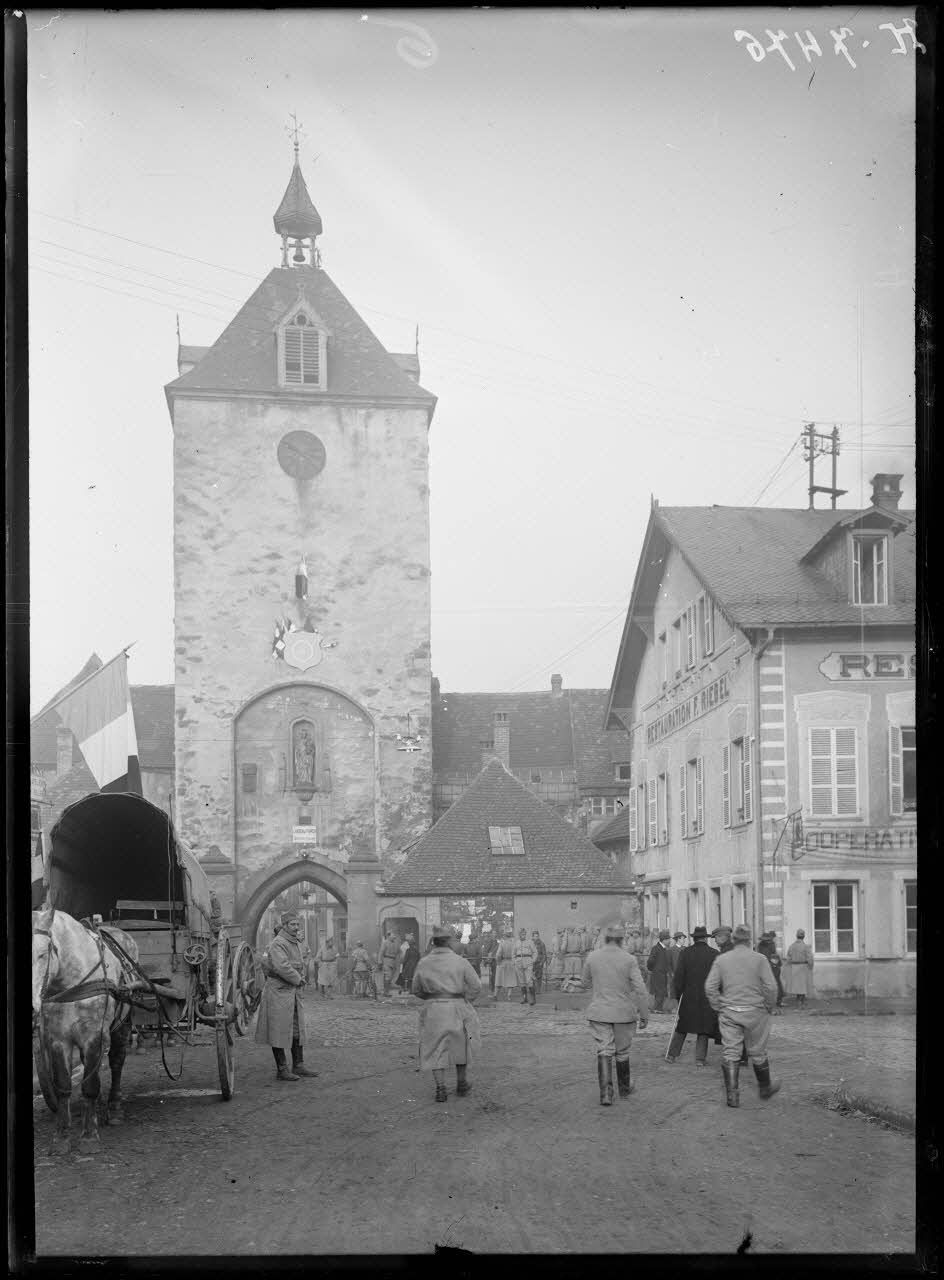 Accueil des troupes par la population à Strasbourg, novembre 1918.