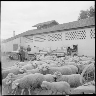 Moutons rentrant des pâturages.