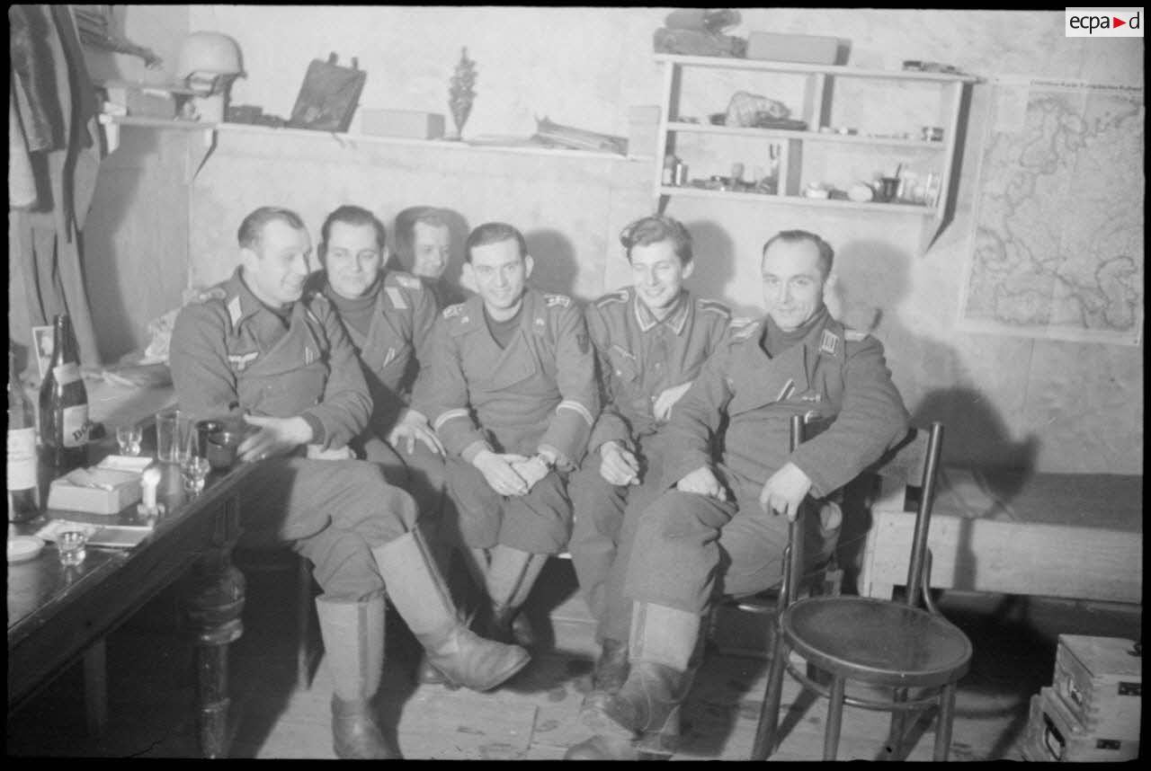 Moment de repos et de détente pour des Panzergrenadiers et tankistes du schwer Panzerjäger Abteilung 519.