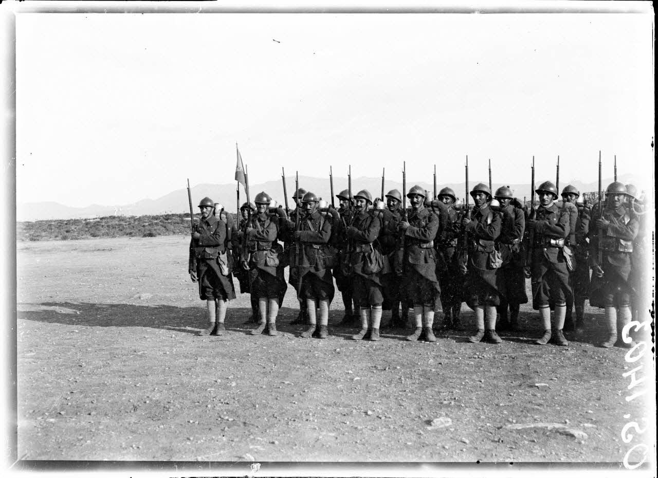 Monarga. Chypre. Revue d'un bataillon de la Légion d'Orient.