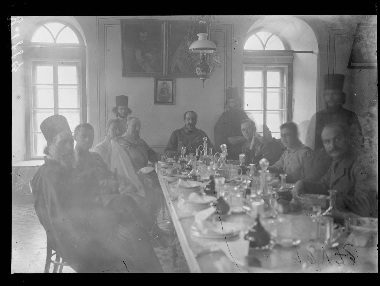 Monastère de Zographou. Déjeuner de la mission. [légende d'origine]