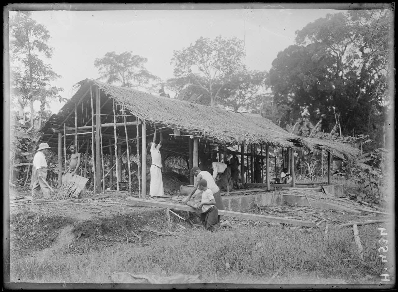 Monngombé, nord d'Edéa. Construction d'une maison. [légende d'origine]