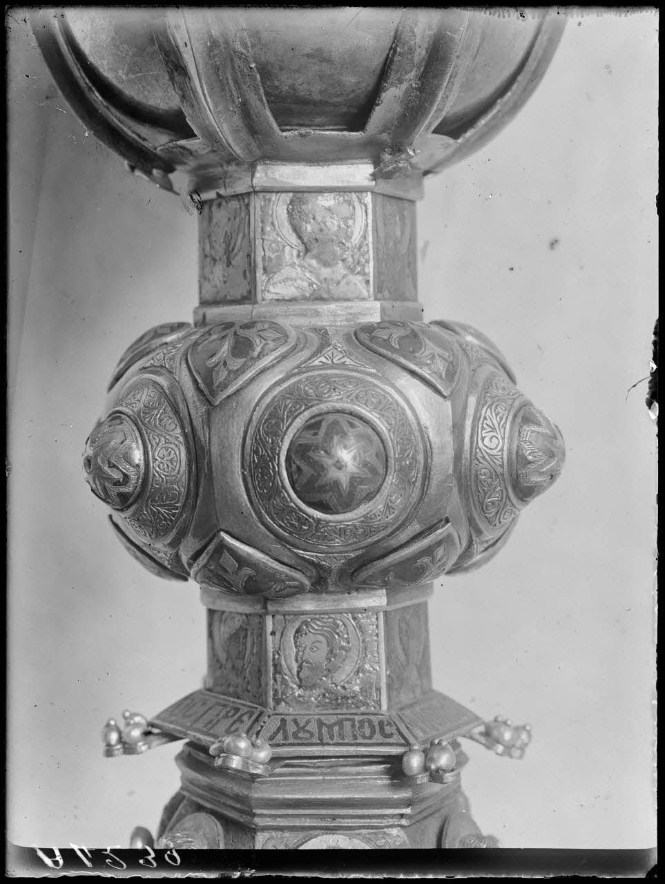 Mont Athos, monastère de Vatopedi. Ciboire A 4224, détail, personnage sur le couvercle, ornée d'émaux.