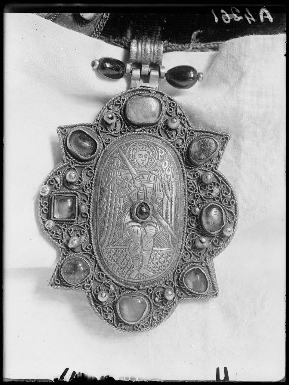 Mont Athos, monastère de Vatopedi. Ciboire A 4224, détail extérieur du couvercle, l'archange Raphaël (émaux translucides).