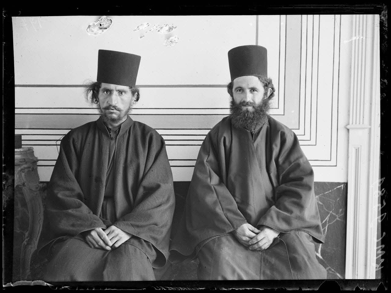 Une vue des coupoles du monastère Saint-Paul sur le mont Athos. Portraits de moines et de soldats.