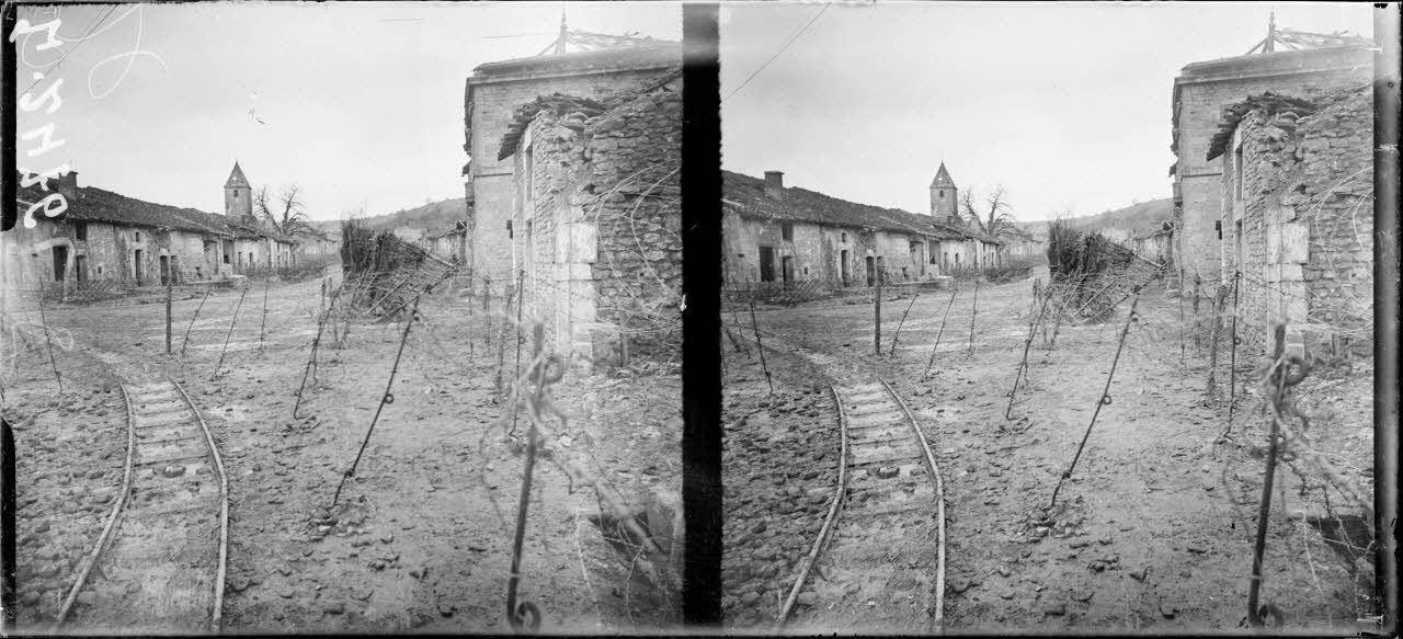 - Dans le village de Mont-sur-Côtes, au sud-est de Verdun, (Meuse, 21/03/1917, L 2470 à L 2473, L 2476 à L 2477, L 2479 à L 2480) des défenses ont été aménagées par les soldats français, qui occupent les caves des maisons abandonnées. Des réseaux de barbelés et une voie étroite de 0,60 empruntent les rues du village.