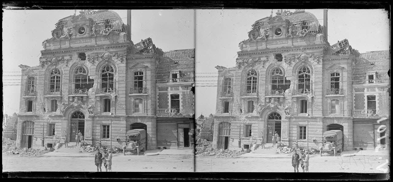 - Dans Montdidier (10/08/1918, V 2966 à V 2986) les troupes de la 60e DI occupe la ville entièrement dévastée. L'église, le palais de Justice et la mairie sont entièrement détruits. La place Parmentier est également dévastée, ainsi que la majorité des habitations.