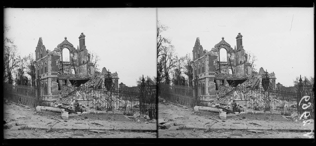 - Dans Montdidier (10/08/1918, V 2966 à V 2986) les troupes de la 60e DI occupe la ville entièrement dévastée. L'église, le palais de Justice et la mairie sont entièrement détruits. La place Parmentier est également dévastée, ainsi que la majorité des habitations.