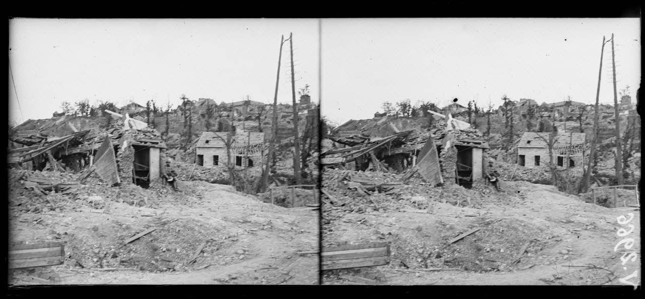 - Dans Montdidier (10/08/1918, V 2966 à V 2986) les troupes de la 60e DI occupe la ville entièrement dévastée. L'église, le palais de Justice et la mairie sont entièrement détruits. La place Parmentier est également dévastée, ainsi que la majorité des habitations.