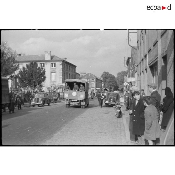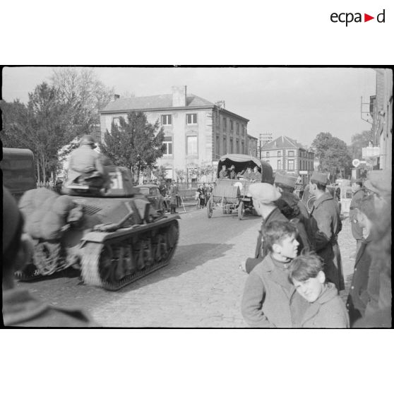Sur le front de la 9e armée, une camionnette bâchée de 1,5 t Citroën type 23 et deux chars Hotchkiss H 35 de la 2e DLM (Division légère mécanique) montent en ligne et passent rue Madame sous le regard des habitants belges.