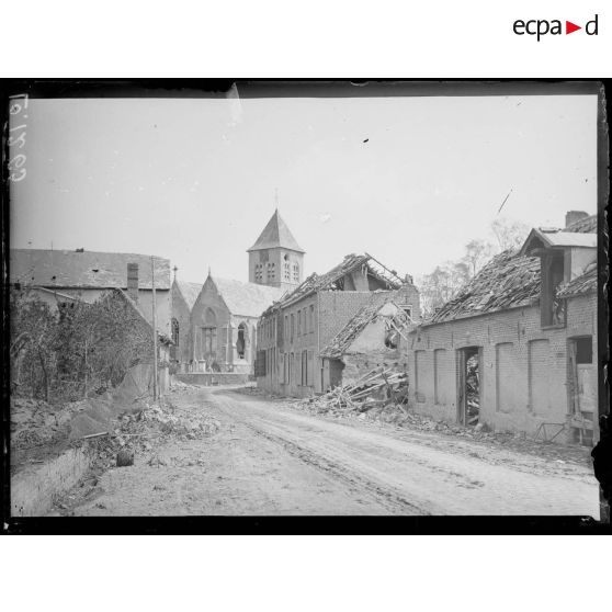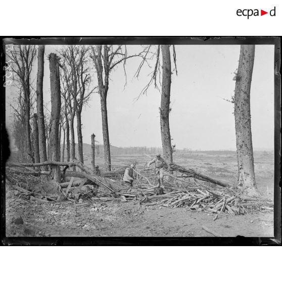 Monts-des-Flandres, la route de Locre à Clytte. Arbres fauchés par les obus.