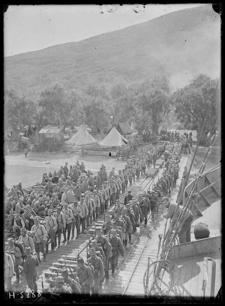 Moraitika. Fantassins serbes (division de la Drina) montant à bord du "Miquelon".