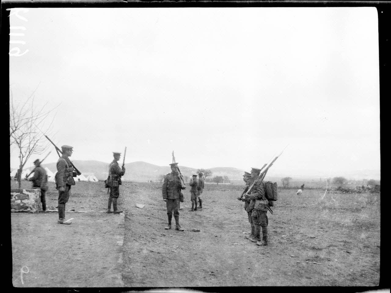 Moudros. Relève de la garde anglaise au Head Quarters (intermédiaire base M.E.T). [légende d'origine]