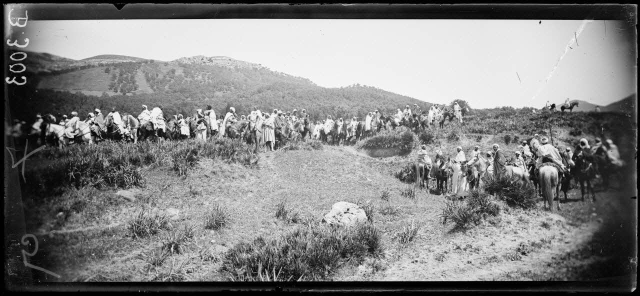 Moulay Idriss, marocains faisant la haie le long de la route que doit suivre le général Lyautey.