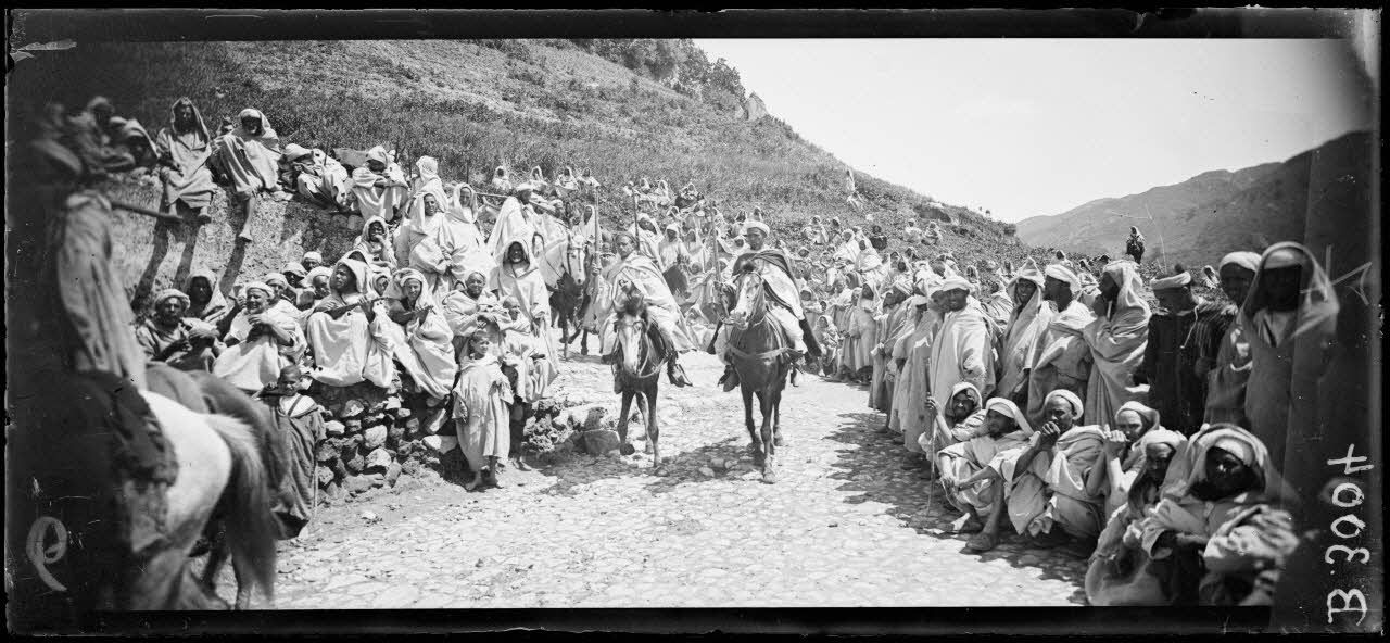 Moulay Idriss, marocains faisant la haie le long de la route que doit suivre le général Lyautey.