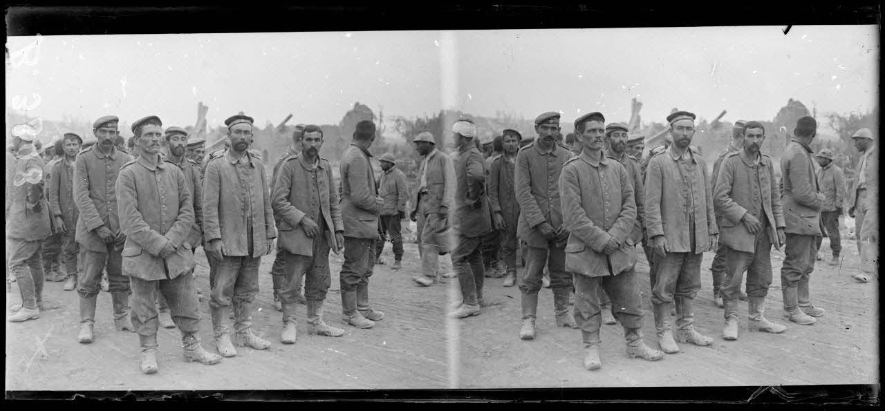 Au moulin de Fargny, formation d’une colonne de prisonniers pour le départ à l’arrière.