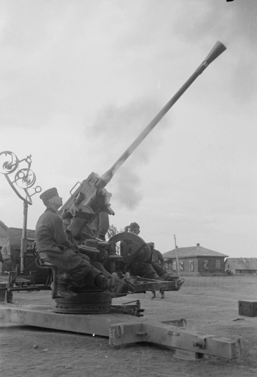 Mouvement d'une batterie de FlaK, au premier plan un canon de 3,7 cm FlaK 18.