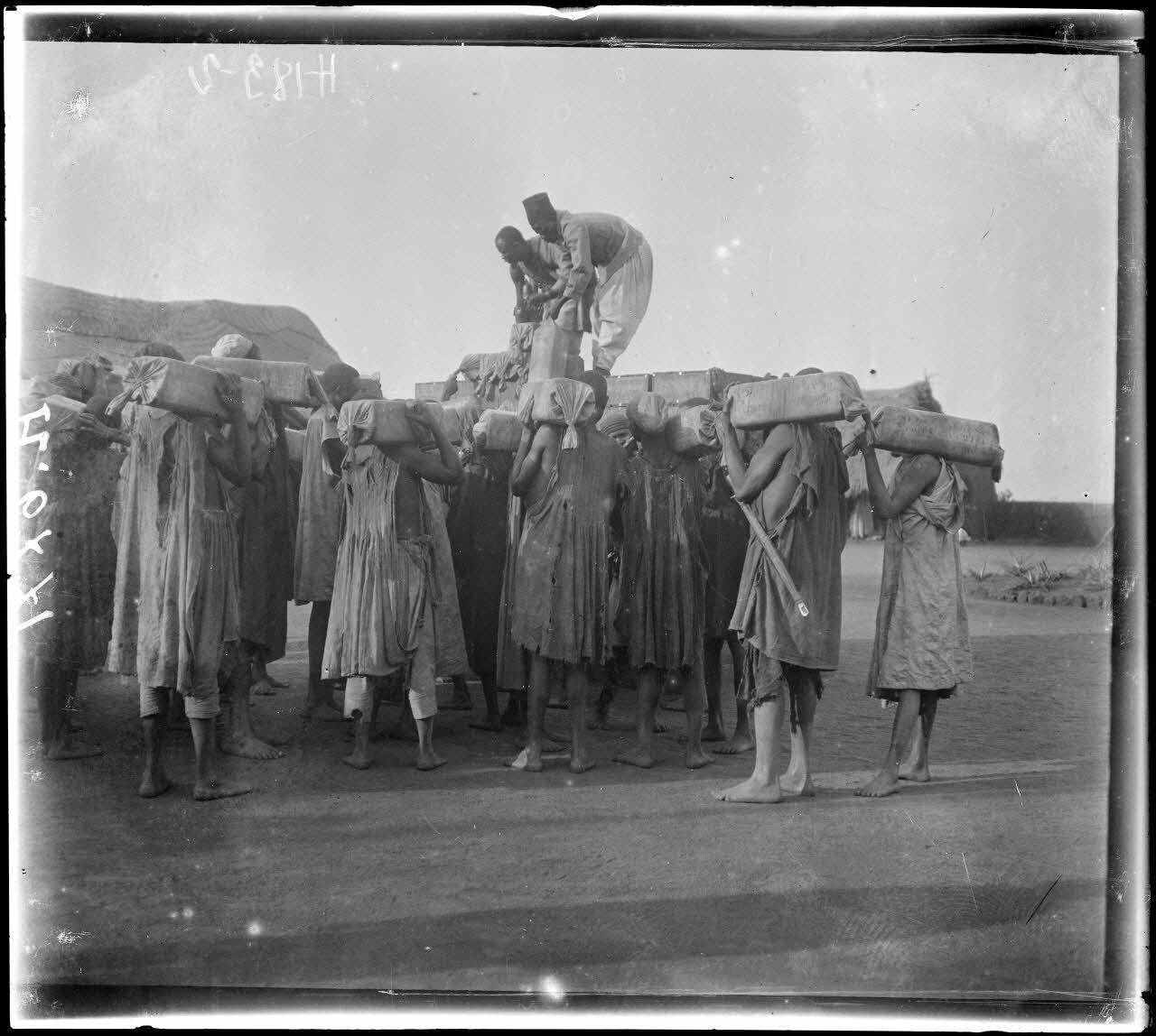 N'Gaoundéré. Porteurs prenant leurs charges. [légende d'origine]