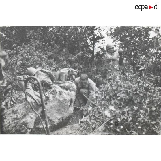 No 1453. Offensive 18 juillet 1918 avant ancienville. Mitrailleurs dans les blés. 23e R.I. .