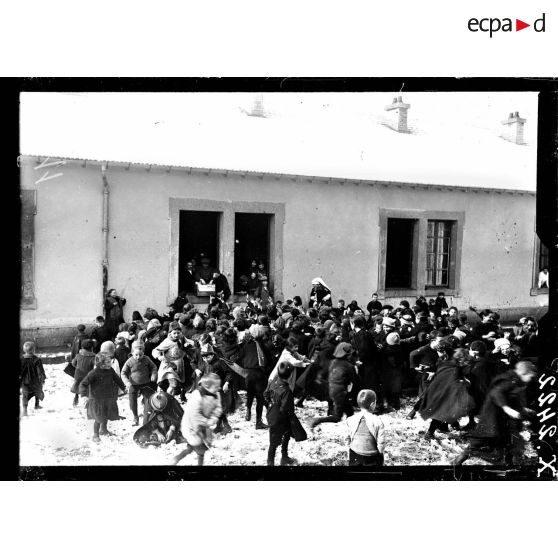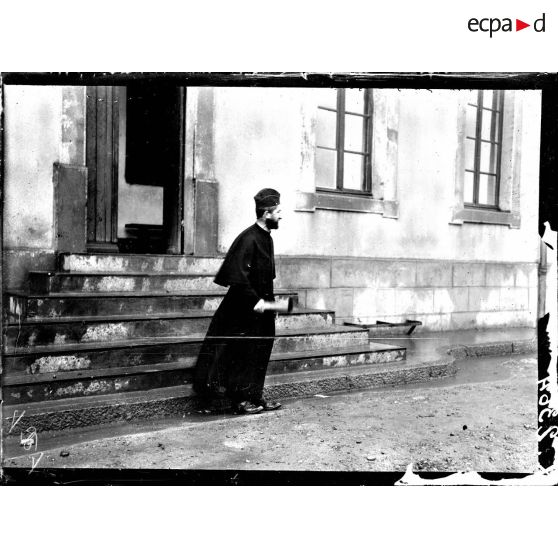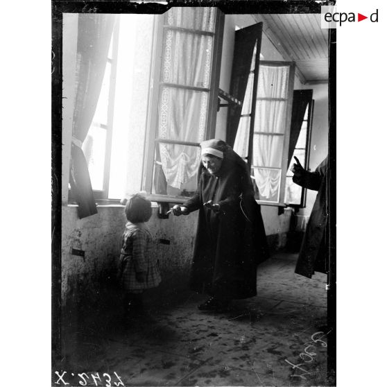 Toul (Meurthe-et-Moselle). Asile de Luxembourg. Croix-Rouge américaine. L'aumonier appelant les enfants pour le cathéchisme.