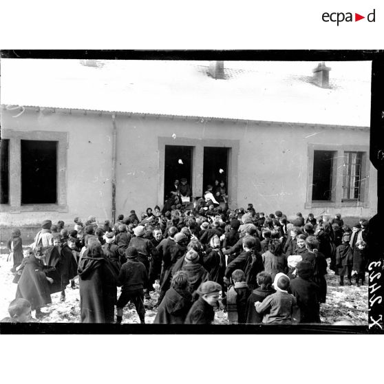 Toul (Meurthe-et-Moselle). Asile de Luxembourg. Croix-Rouge américaine. Une distribution de pommes.
