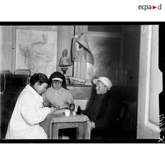 Pont-à-Mousson (Meurthe-et-Moselle). Au dispensaire américain, une consultation.
