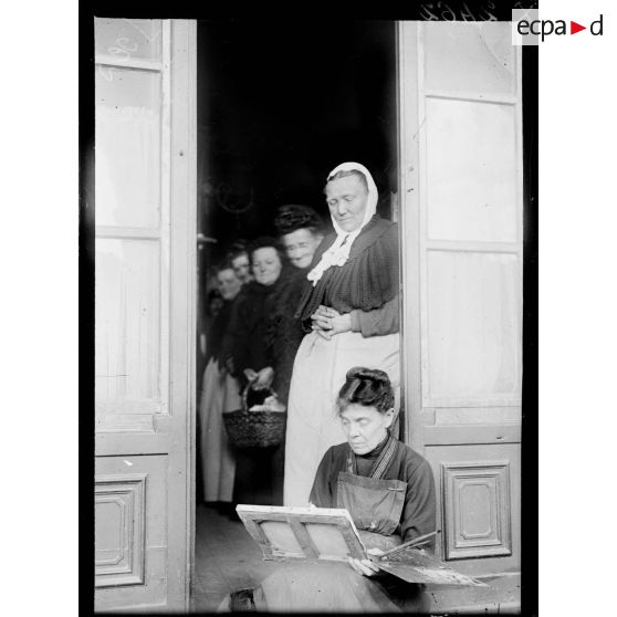 Pont-à-Mousson (Meurthe-et-Moselle). Une infirmière faisant de la peinture.
