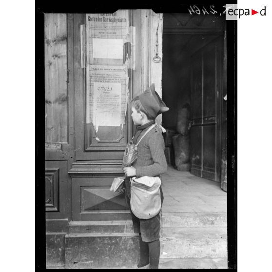 Pont-à-Mousson (Meurthe-et-Moselle). Enfant lisant un avis.
