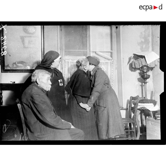 Pont-à-Mousson (Meurthe-et-Moselle). Infirmières américaines visitant des vieillards.