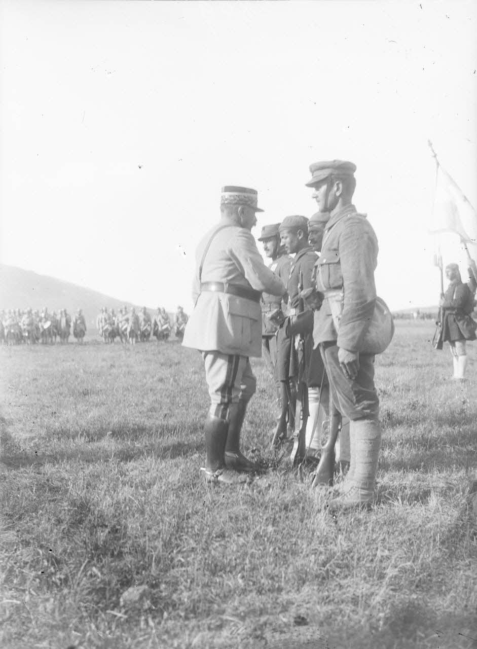Naresch. Le Général Guillaumat décore un soldat grec.