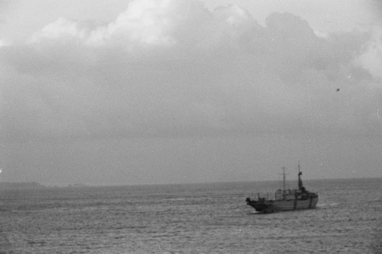 Un dauphin ou une baleine photographié depuis un briseur de blocus (Sperrbrecher).