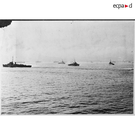 Navires transports de troupes et de protection des unités françaises de l’armée B en route vers les côtes de Provence.