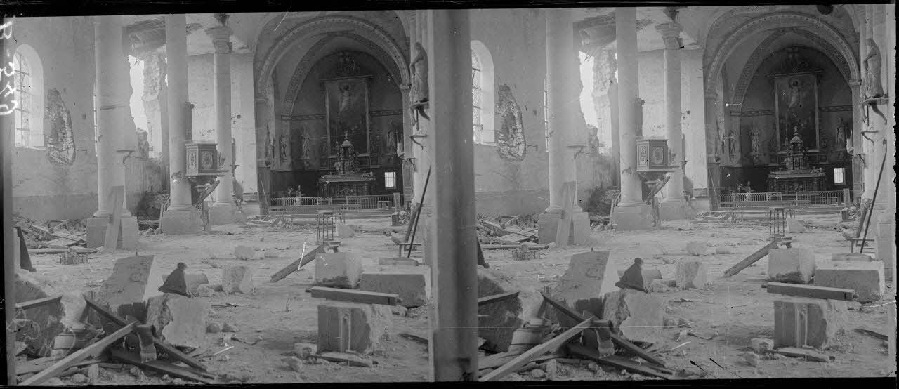 Intérieur de l’église de Beauzée (Meuse) détruite aux combats du 12 septembre 1914.