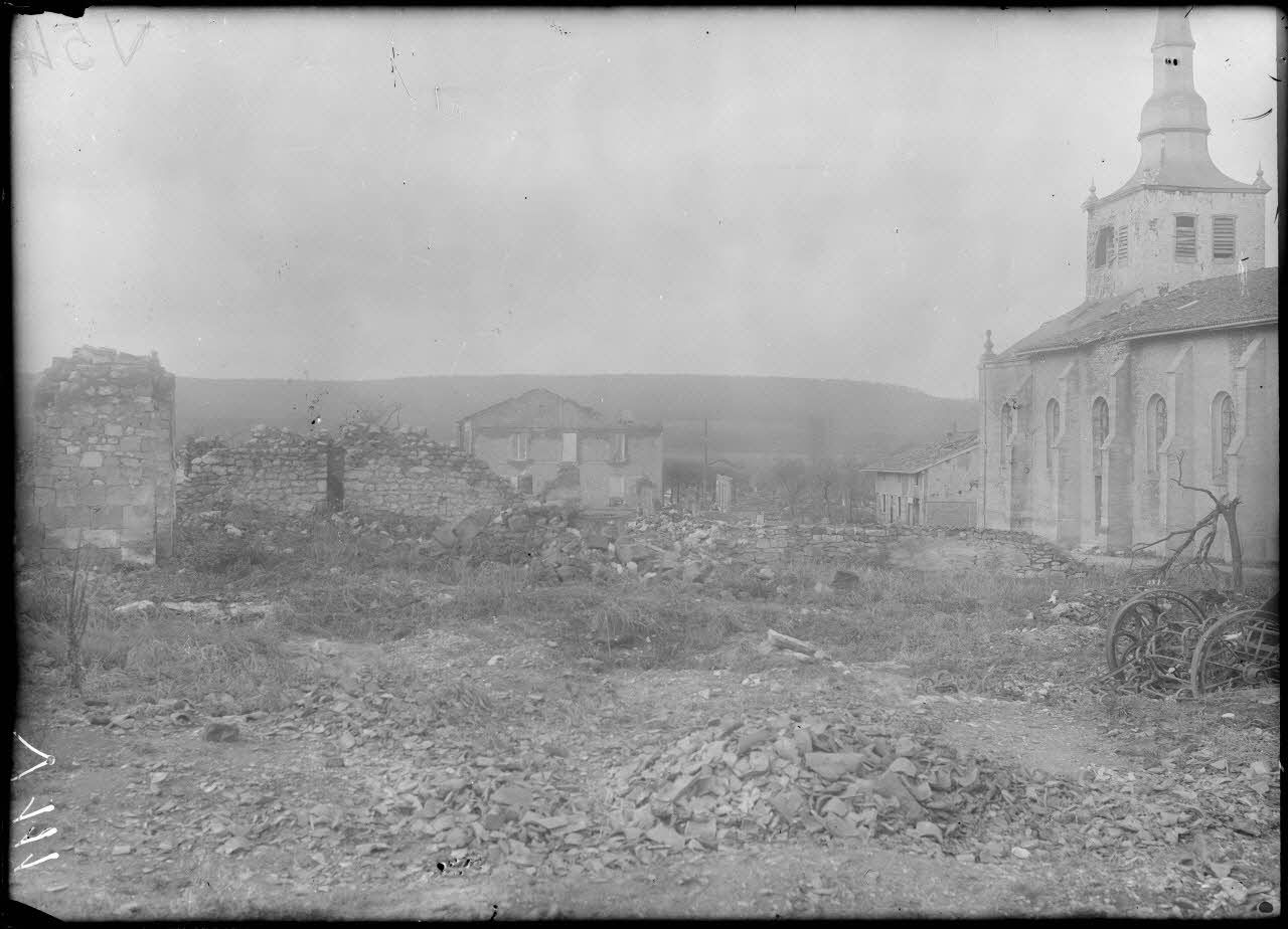 Neuvilly, Meuse, ruines derrière l'église. [légende d'origine]