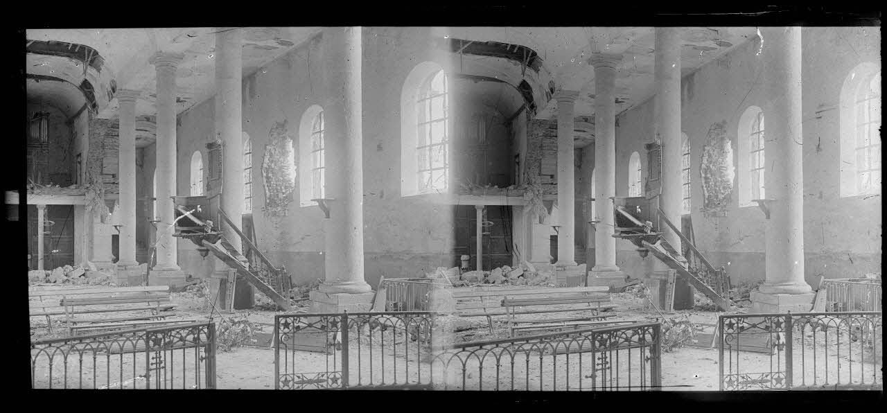 Intérieur de l’église de Beauzée (Meuse) détruite aux combats du 12 septembre 1914.