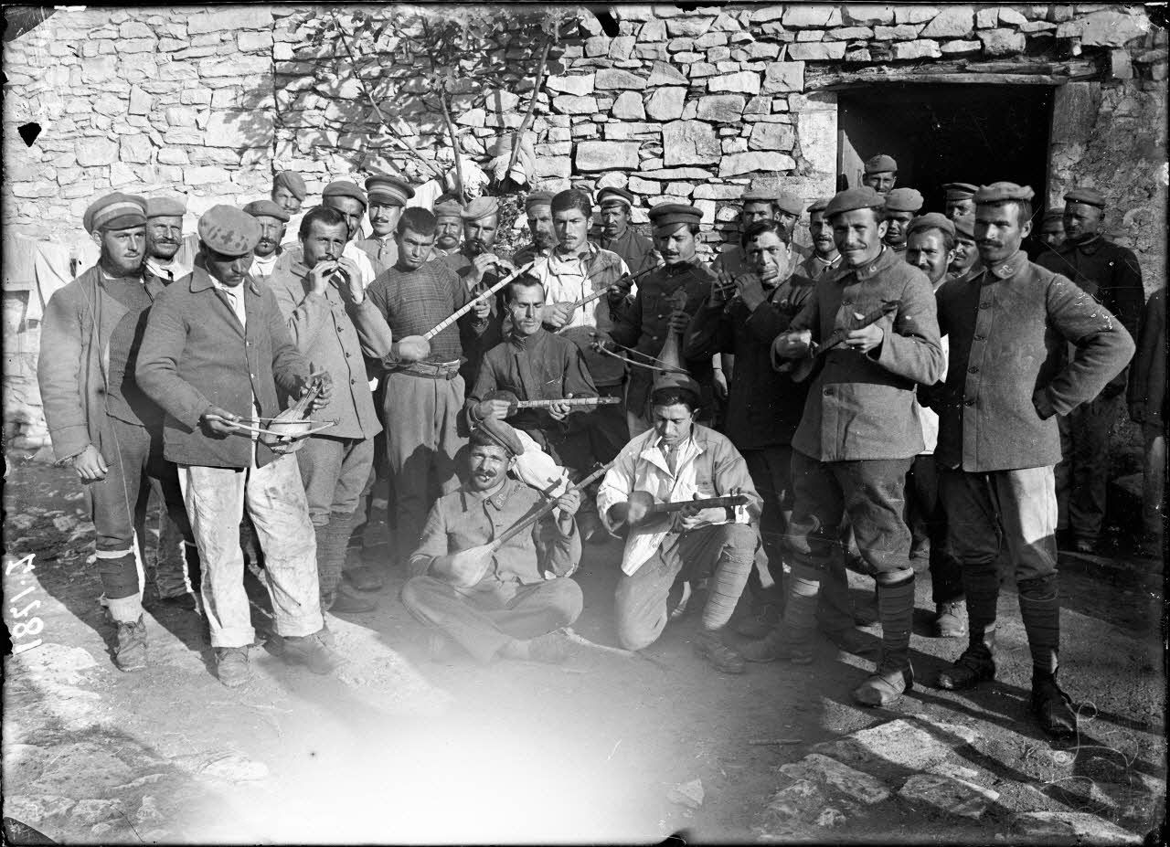 Nîmes (Gard). Dépôt de prisonniers bulgares. Ferme de Font Froide. Groupe de musiciens. [légende d'origine]