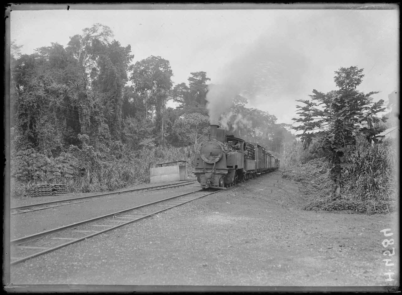 Nlohé. Arrivée d'un train. [légende d'origine]