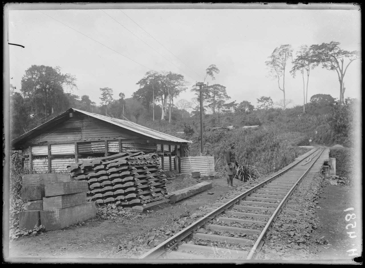 A Nloé, à l'endroit où la ligne du chemin de fer du Nord franchit la Dibombé, une construction en bois et tôle sert de poste de défense du pont.