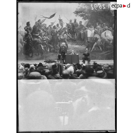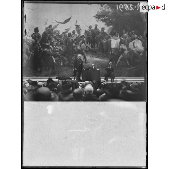 Monsieur Millerand prononce un discours dans la galerie des Batailles au profit du comité serbe versaillais.