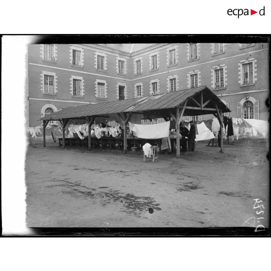 Angers, Maine-et-Loire, dépôt des internés de Mongazon. La cour.