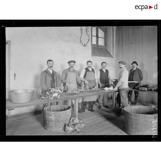 Guérande, Loire-Atlantique. Dépôt d'internés au Séminaire. Cuisines, préparation des aliments.