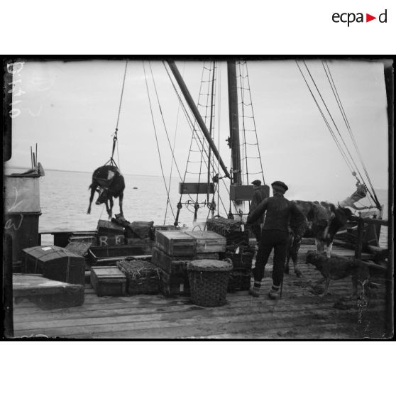 Fromentine, Vendée, embarquement de bétail pour le camp de l'île d'Yeu.