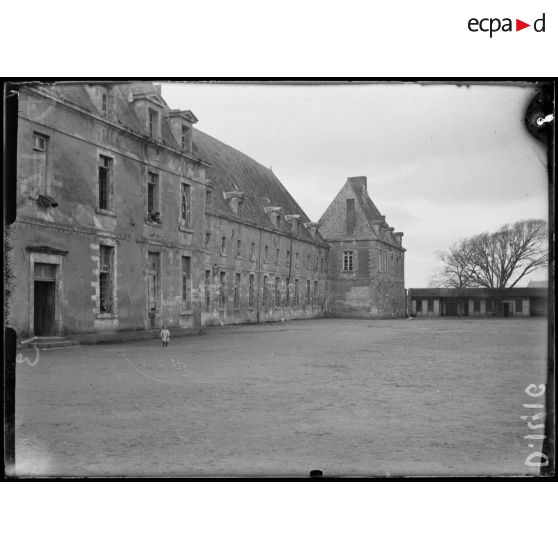 Guérande, Loire-Atlantique. Dépôt d'internés au Séminaire. Cour du grand séminaire.