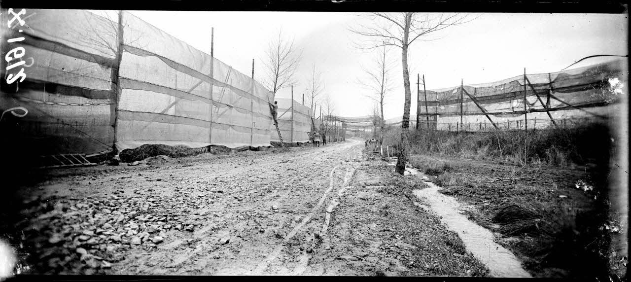Nomény (Meurthe-et-Moselle). Camouflage de la route de Serrières à Nomény. [légende d'origine]