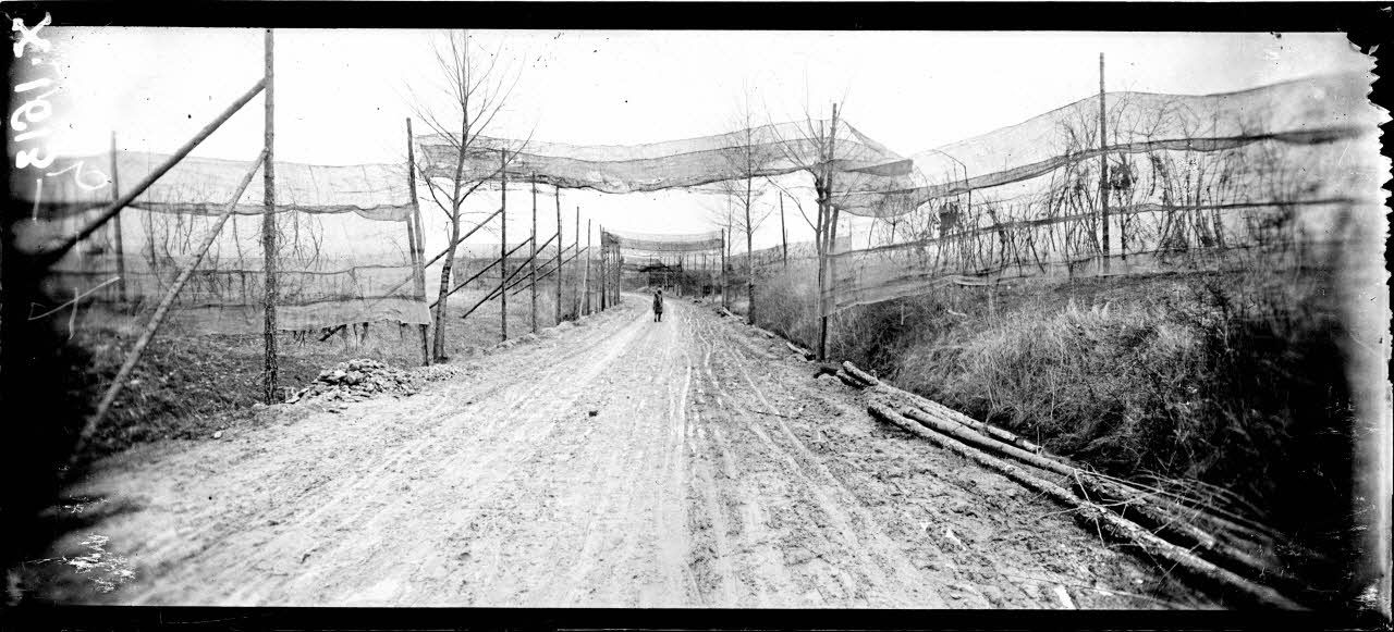 Nomény (Meurthe-et-Moselle). Camouflage de la route de Serrières à Nomény.