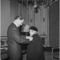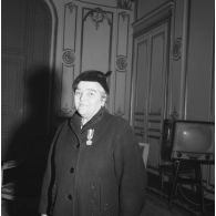 Femme rapatriée d'Algérie recevant une médaille…